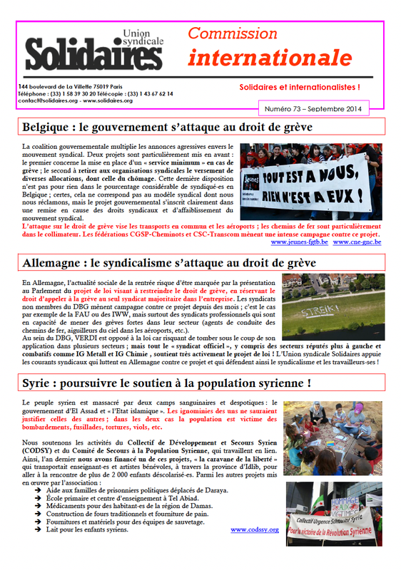 Solidaires et internationalistes ! : N° 73