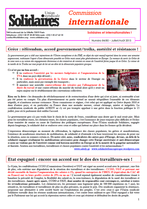 Solidaires et internationalistes ! : N° 84/85