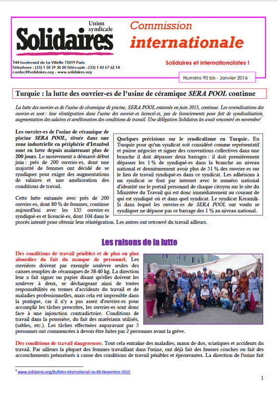 La lutte des ouvrier-es de l’usine de céramique SERA POOL en Turquie.