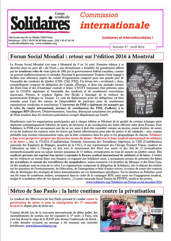 Solidaires et internationalistes ! : N° 97